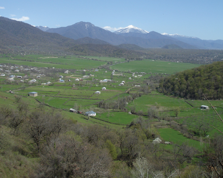The spectacular mountains just behind Qabala are part of the Greater Caucasus range. The highest peak in the range is Bazarduzu and its height is 4,466 m (14,652 feet). Qabala itself is at an elevation of a little over 2,000 feet.