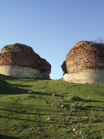 Today, all that exists, at least on the surface, are two towers which formed a gateway to the city, some crumbling fortress walls, and some remains of the towers on the walls; they were every 25m along the walls. The site is littered with ancient bricks and broken pottery. The gateway towers were strengthened some years ago (1978). There is a spring which provides a water supply - is it strange to see a spring right beside a river?