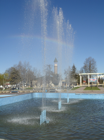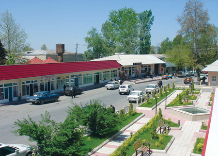 Qabala today is a busy, bustling town. The main road from Ismailli to Sheki bypasses the centre of the town, so it´s easy to miss it if you are driving to Sheki. But even on a quick drive through you won´t miss the colourful mosaic from Soviet times. But don´t drive through - stop awhile.Waking on my second morning I heard the rain again. Again? No, it was just the fountain below my balcony, and the sun was blazing in. The white snowy mountain tops were clearly visible and I was secretly pleased that everyone was late for breakfast, because I could steal a few minutes by myself in the streets of Qabala. What a busy town it is, with all the shops and tea houses open and it was only just after nine - contrast that with Baku! After the rain of the previous day, and with the promise of a fine day to come, it felt as if all the weekend DIY jobs were being planned. I walked through the neat and tidy Heydar Aliyev Park in the centre by the attractive mosque, which incidentally is now operating as a mosque and not as the museum anymore (moved to its new location as previously described). The mosque is apparently quite beautiful inside, with a big chandelier and attractive carpets. The park´s fountains were on, sparkling in the sun, filling me with optimism about the day ahead.