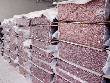 The nuts are dried to reduce the moisture content, then shelled, then individually hand-checked for quality, and finally graded by size.