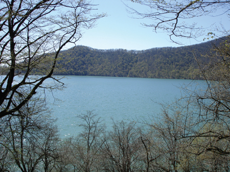 Back down towards Qabala and then up towards the mountain villages of Laza and Durja. I had previously visited Ay Ishagi (a small resort with a little river-fed pond and a pedallo, don´t get excited) so had a rough idea of the area, but was totally unprepared for the sight of a fantastic new resort being built beyond there, on the left hand side of the road. Unfortunately we couldn´t have too close a look because the resort is under construction, but if I´m still here next year when it´s completed then I would love to just move in. I can´t even tell you its name! It looks as if the resort comprises three main hotel buildings, and then off to one side, a number of beautiful spacious villas with verandas, maybe in a New England style, that look as if they have arrived straight from the very best international timeshare resorts. The views over the river to the wooded hills opposite are amazing, and the wooded hills up behind the resort look inviting for woodland walks. This resort should be absolutely stunning when it is completed. Further upstream, the village of Durja is apparently worth a visit in summer, and somewhere nearby is Azerbaijan´s biggest waterfall. On a second visit here I still didn´t make it all the way to Durja because of a landslide. But the countryside is beautiful, the river is clear and cool, and everything was that unbeatable, spring-time green.