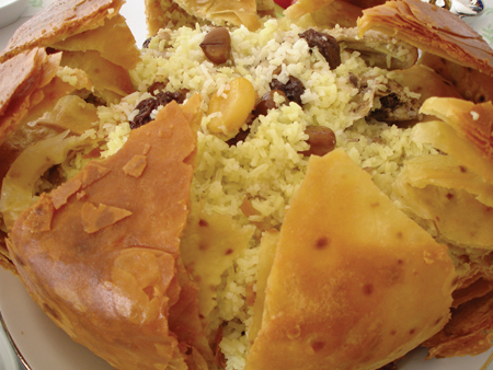 King Pilau was served one day for lunch, and put a smile on all our faces. It must be one of the biggest deep fried pies I´ve ever tasted. Apparently some 6kg of butter went in to its making, though how much of that was actually ´in´ it, and how much was used for the frying I´m not quite sure. But that ´pastry´ is about 20 layers of home-made, hand-rolled thin pastry, similar to filo pastry, smeared with butter between each layer. The filling is the pilau, which is buttery rice together with cooked chicken and cooked dried fruits and chestnuts. Definitely impressive, and definitely tasty. The pie is cut open across the top like a sliced cake, and each ´slice´ of pastry is lifted from the centre, so that the pie looks like a giant golden crown for a king. So delicious - I will never forget it.